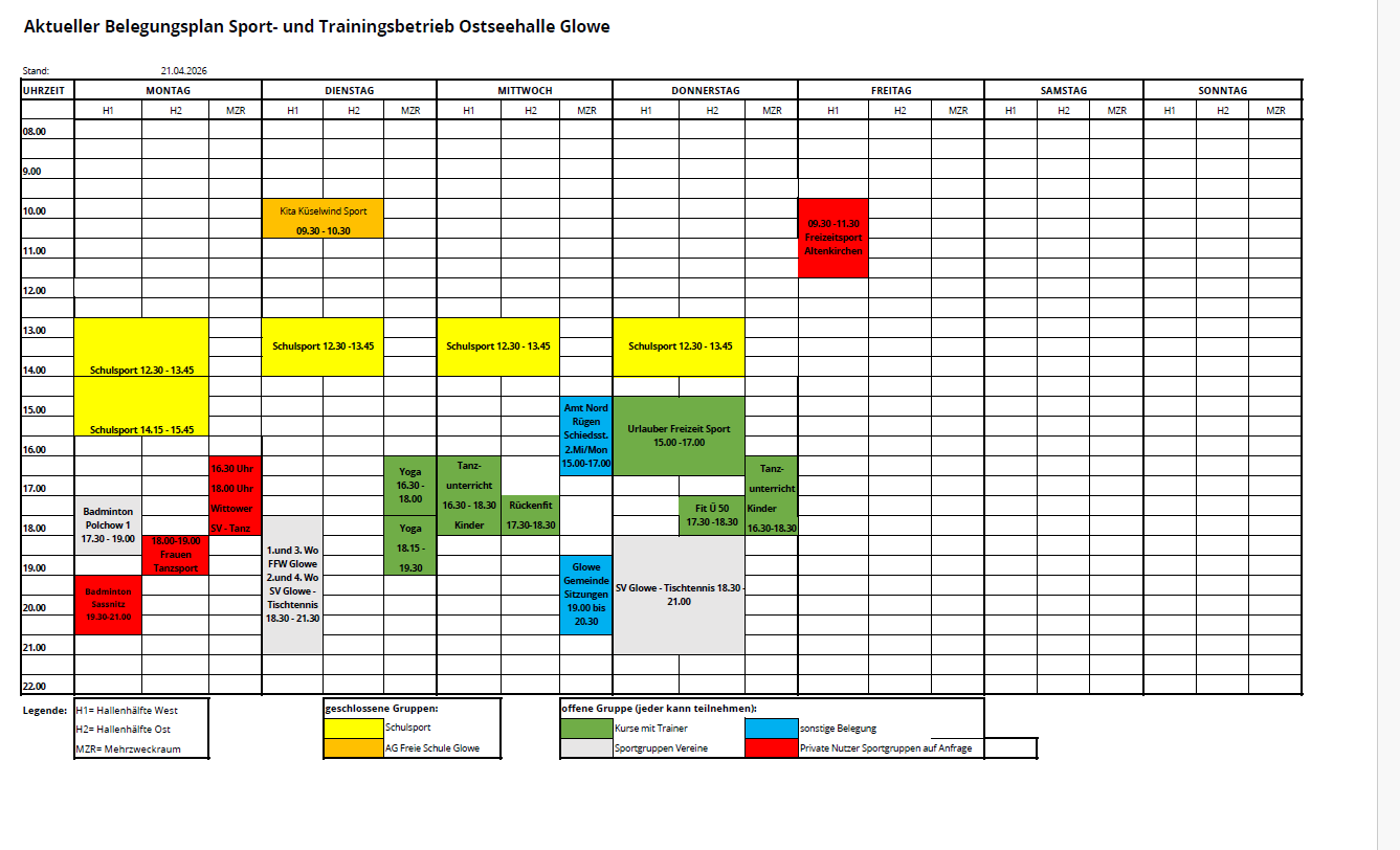 Aktueller Belegungsplan Ostseehalle Glowe